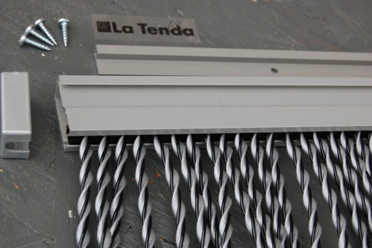Mit dem Türvorhang La Tenda RIVA 3 (120 x 230 cm) halten Sie lästige Fliegen und andere Insekten im Sommer draußen, wenn Ihre Terrassentür offen ist. Dieser preisgünstige Türvorhang bietet ein hervorragendes Preis-Leistungs-Verhältnis. RIVA 3 ist in Grau und Schwarz, und besticht durch sein besonderes Design. Der Türvorhang verfügt über ein robustes, grau beschichtetes Aluminium-Oberprofil. Ein kostenloses, h-förmiges Aluminium-„Stuhl“-Profil zur einfachen Montage am oder über dem Türrahmen ist ebenfalls enthalten. Schrauben sind im Lieferumfang enthalten.