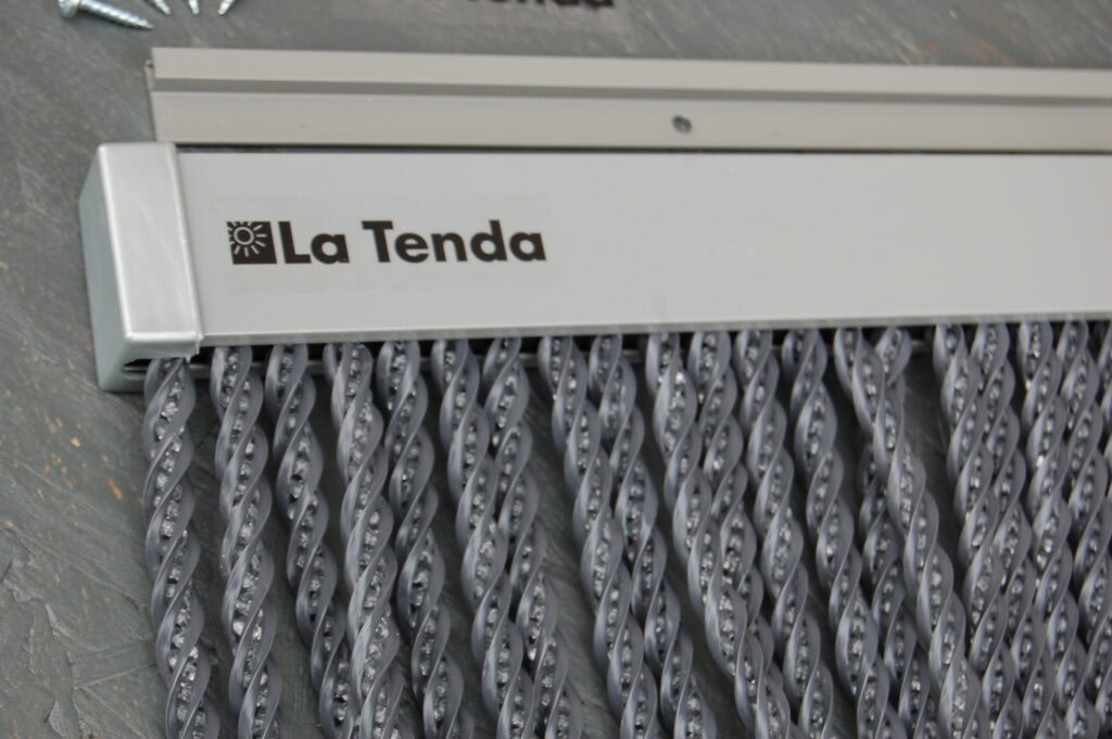 BELLANO 4 in de maat 120x250cm is een zeer exclusief La Tenda PRO deurgordijn. Dit vliegengordijn is gemaakt van 9mm dikke gedraaide PVC-koord. Antraciet met middenin transparant, dus het laat licht door. Een echte Rolls Royce dus, in Italiaanse kwaliteit. Het deurgordijn is voorzien van een solide grijs gecoat aluminium bovenprofiel. Ook wordt gratis een aluminium h ‘stoeltje’- profiel bijgesloten voor eenvoudige montage op of boven het deurkozijn. Schroeven worden meegeleverd.