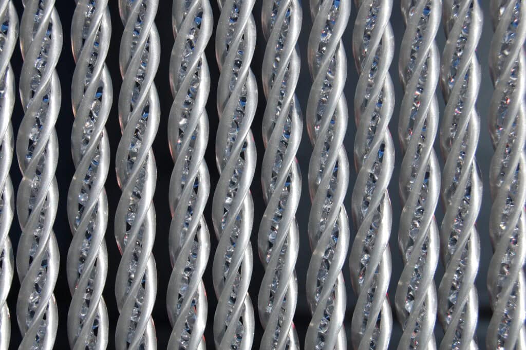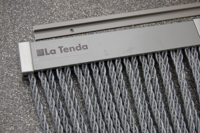 BELLANO 5 in de maat 100x230cm is een zeer exclusief La Tenda PRO deurgordijn. Dit vliegengordijn is gemaakt van 9mm dikke gedraaide PVC-koord. Zilvergrijs met middenin transparant, dus het laat licht door. Een echte Rolls Royce dus, in Italiaanse kwaliteit. Het deurgordijn is voorzien van een solide grijs gecoat aluminium bovenprofiel. Ook wordt gratis een aluminium h ‘stoeltje’- profiel bijgesloten voor eenvoudige montage op of boven het deurkozijn. Schroeven worden meegeleverd.