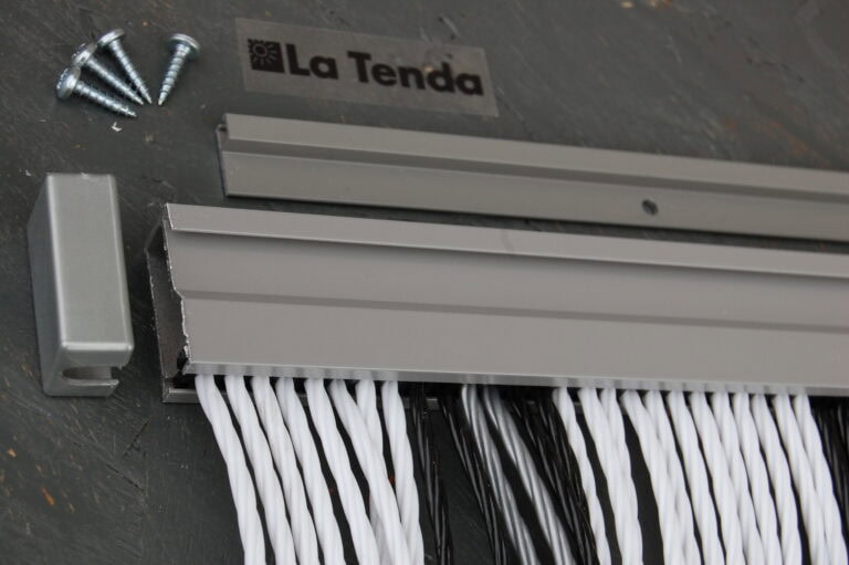 Met La Tenda deurgordijn OSTUNI 1 in de maat 90x210cm houdt u irritante vliegen en andere insecten buiten de woning wanneer in het zomerseizoen de tuindeur open staat. een stijlvol vliegen- gordijn met een prima prijs-kwaliteit verhouding. Een unieke La Tenda kleurencombi van wit, zwart en grijs. Het deurgordijn is voorzien van een solide grijs gecoat aluminium bovenprofiel. Ook wordt gratis een aluminium h ‘stoeltje’- profiel bijgesloten voor eenvoudige montage op of boven het deurkozijn. Schroeven worden meegeleverd.