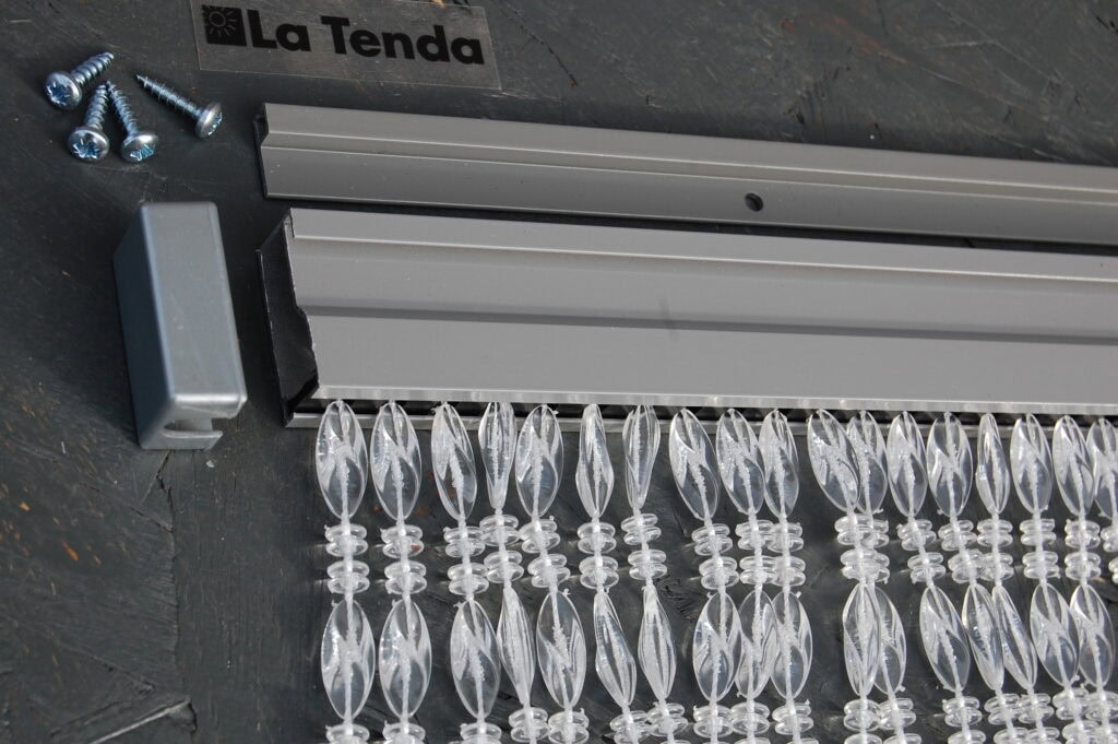 Met La Tenda kralengordijn ELBA 2 – in de maat 120x230cm – houdt u irritante vliegen en andere insecten buiten de woning wanneer in het zomerseizoen de tuindeur open staat. Een degelijk vliegengordijn, gemaakt van kralen op een draad. Met een unieke typische vorm en van Italiaanse kwaliteit. In de kleur transparant, dus het laat veel licht door. Het deurgordijn is voorzien van een solide grijs gecoat aluminium bovenprofiel. Ook wordt gratis een aluminium h ‘stoeltje’- profiel bijgesloten voor eenvoudige montage op of boven het deurkozijn. Schroeven worden meegeleverd.