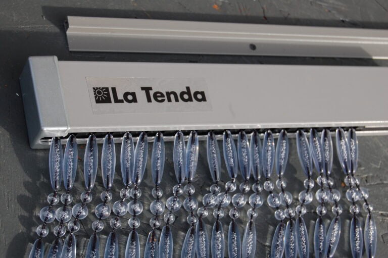 With La Tenda door curtain STRESA 3 – in the size 140x230cm – you keep annoying flies and other insects outside the house when the garden door is open in the summer season. Luxury bead curtain of European make in the original color combination ‘transparent on a black thread’ that you will not find anywhere else. The curtain is equipped with a solid gray coated aluminum top profile. An aluminum h ‘chair’ profile is also included for easy mounting on or above the door frame. Screws are included.