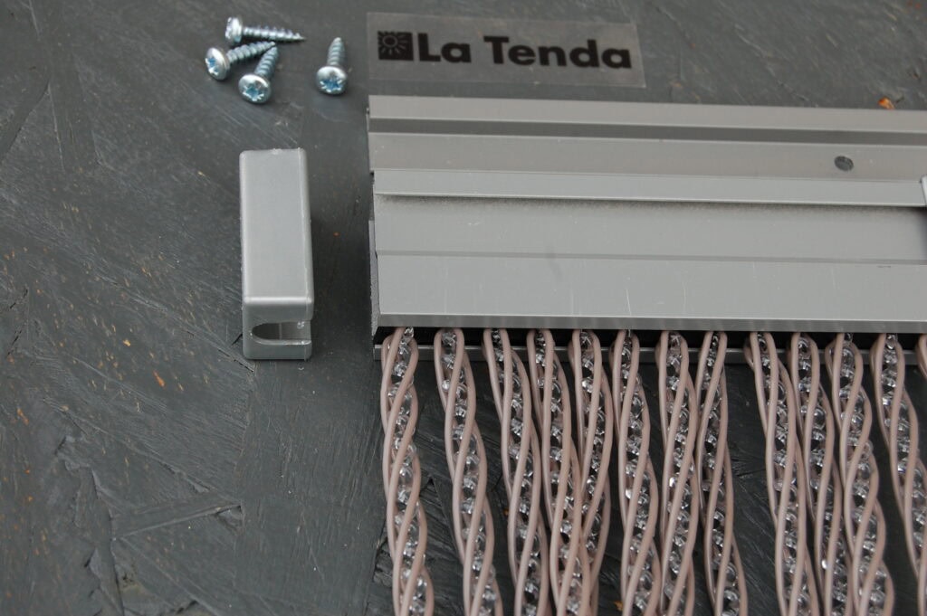 With La Tenda door curtain LUCCA 2 100x230cm you keep annoying flies and other insects outside the house when the garden door is open in the summer season. An effective fly curtain made of twisted soft PVC strings. The color of LUCCA 2 is taupe, and transparent on the inside so it also lets daylight through. It is of European manufacture. The door curtain is equipped with a solid gray coated aluminum top profile. An aluminum h ‘chair’ profile is also included free of charge for easy mounting on or above the door frame. Screws are included.
